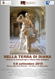 Si svolgerà a Nemi, dal 5-8 settembre 2019, la prima edizione di “Nella Terra di Diana. Festival di Antropologia e Storia delle Religioni”. L’evento è promosso dal Museo delle Religioni “Raffaele Pettazzoni” e dal Comune di Nemi, d’intesa con il Polo Museale del Lazio. Hanno aderito alla manifestazione, conferendo il loro patrocinio, il Centro Interdipartimentale di Studi AMA - Antropologia del Mondo Antico dell’Università degli Studi di Siena, la Consulta Universitaria per la Storia del Cristianesimo e delle Chiese, la delegazione “Antico e Moderno” dell’Associazione Italiana di Cultura Classica, l’International Center for the Sociology of Religion, l’ISMEO - Associazione Internazionale di Studi sul Mediterraneo e l’Oriente e la Società Italiana di Storia delle Religioni.